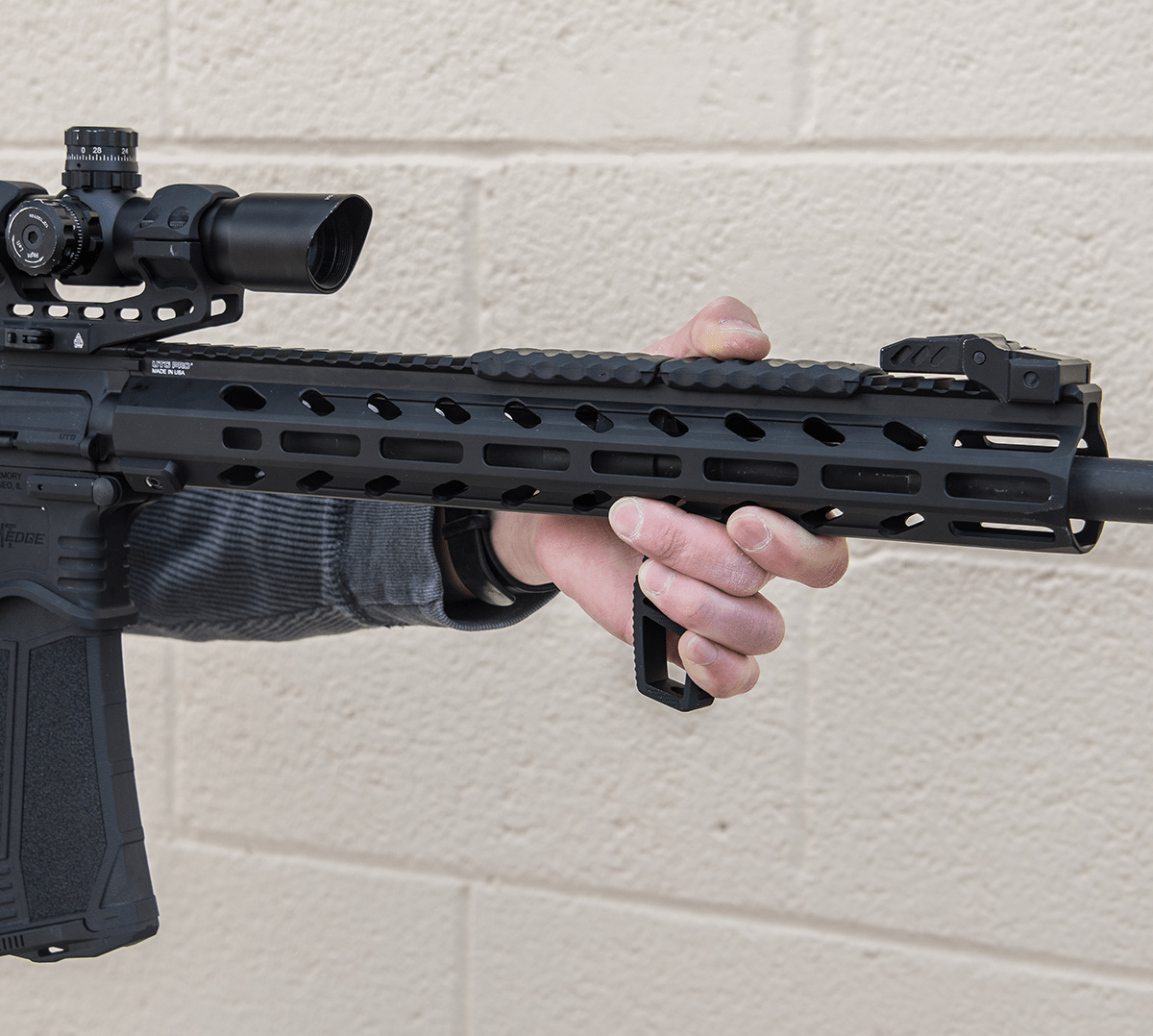 Greppet är anpassat för montering på handguard med M-LOK. Monteringsskruv och insexnyckel ingår.